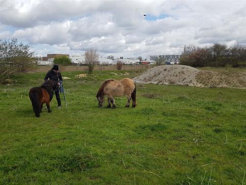 Wenn der Weg sich gabelt kommen wir, wenn wir gerade aus gehen zur „City Farm“. Links, vorbei an einem Feuchtbiotop auf dem manchmal auch Schafe weiden. Nachdem wir die Brücke der B 17 überquert haben können wir an der Tankstelle bei McDonald‘s einen kleinen Imbiss zu uns nehmen.