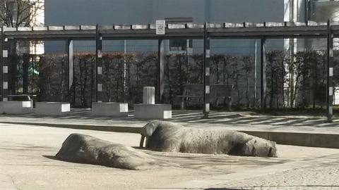 unter der Eisenbahnbrücke durch, zum Bundesamt für Migration und Flüchtlinge Außenstelle Augsburg, zum Job Center, dort gegenüber befindet sich das ehemaligen „Gaswerk“.