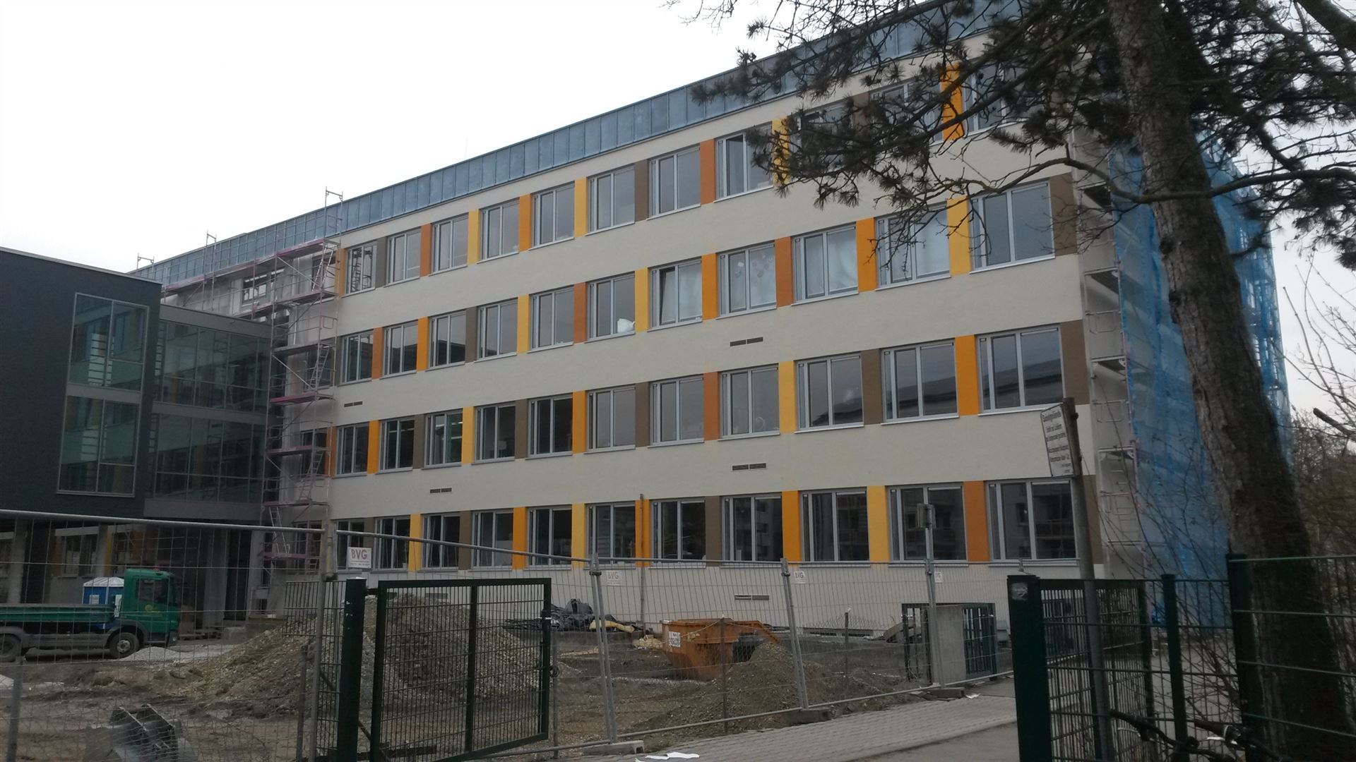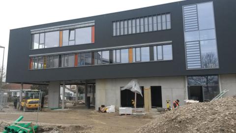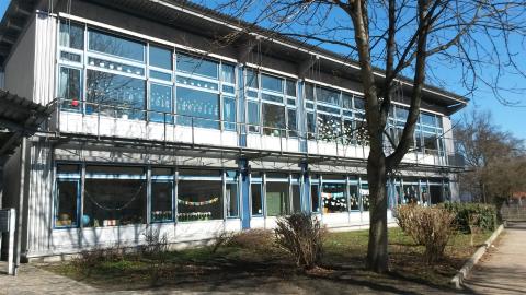 Die Werner-Egk-Grundschule mit neuer Turnhalle
